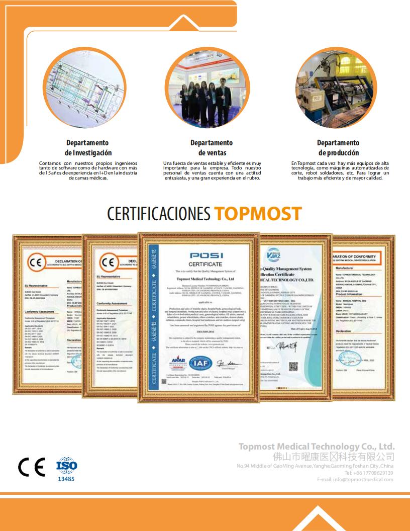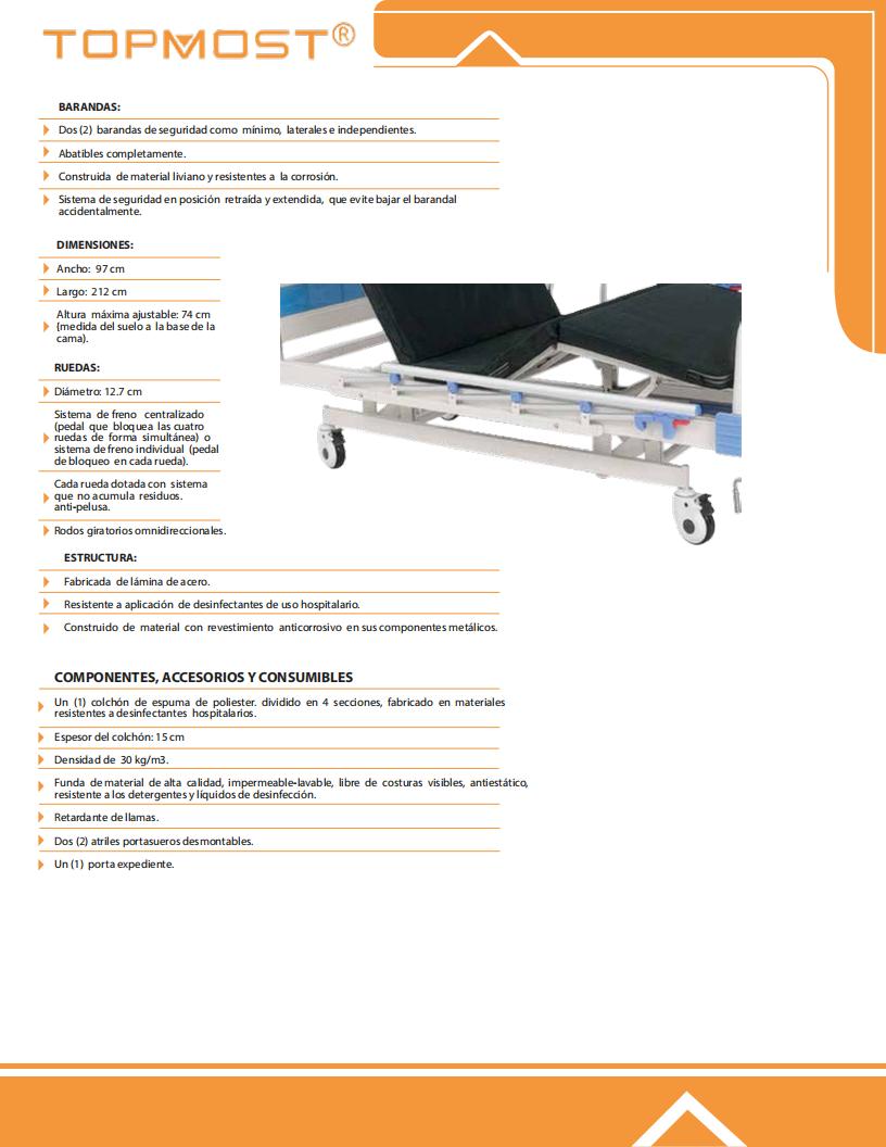 - 2 алюминиевых боковых ограждения с 6 алюминиевыми трубками, поднимающиеся и опускающиеся для предотвращения падения пациента с кровати.